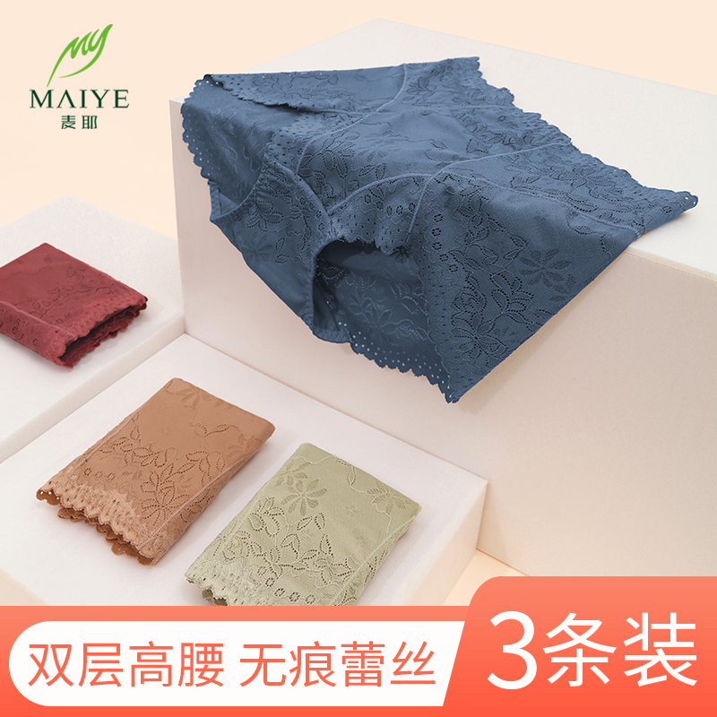 【产品名称:蕾丝内裤女士高腰无痕新款性感收腹收小肚子纯棉抗菌提臀平角短裤】