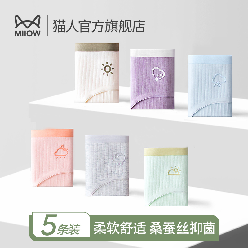 【产品名称:猫人女士内裤纯棉桑蚕丝抗菌裆中腰无痕透气可爱少女生三角短裤F3】