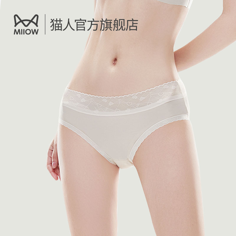 【产品名称:猫人冰丝女士内裤女无痕蜜桃臀抑菌舒适透气中腰短裤女生三角裤头】