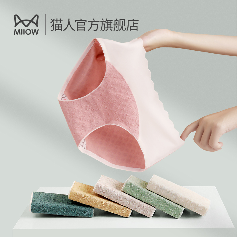 【产品名称:猫人纯棉抑菌裆内裤女性感透气女生无痕中腰提臀收腹女士新款短裤】