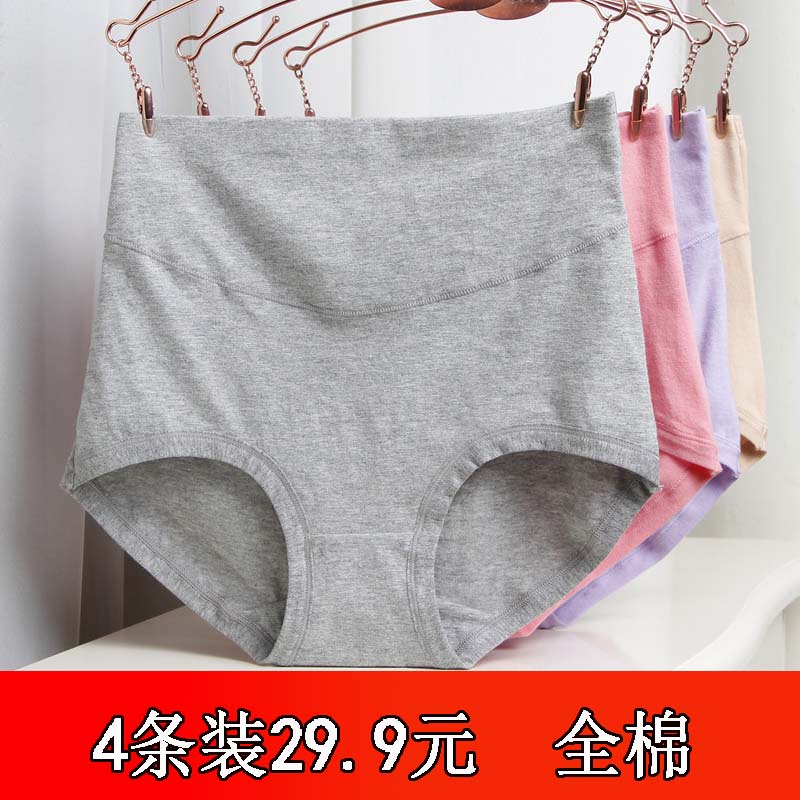 【产品名称:4条装 全棉内裤女士高腰收腹纯棉胖mm加大码大红三角底裤头短裤衩】