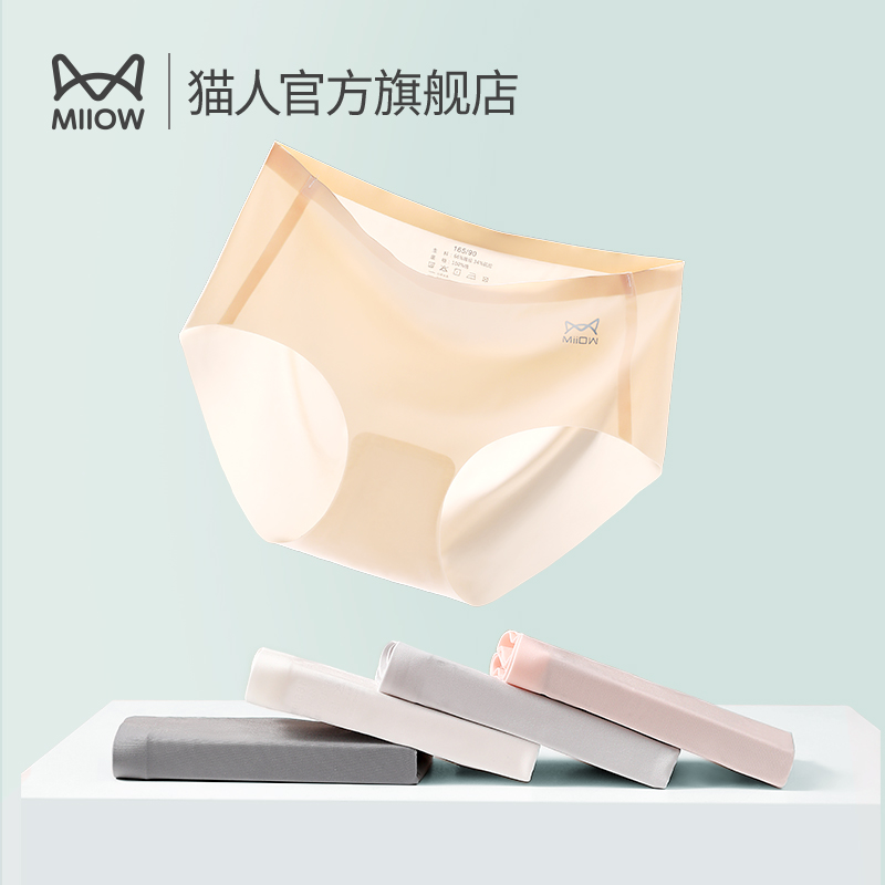 【产品名称:猫人女士内裤女纯欲冰丝无痕抑菌档透气速干女生性感三角裤短裤头】