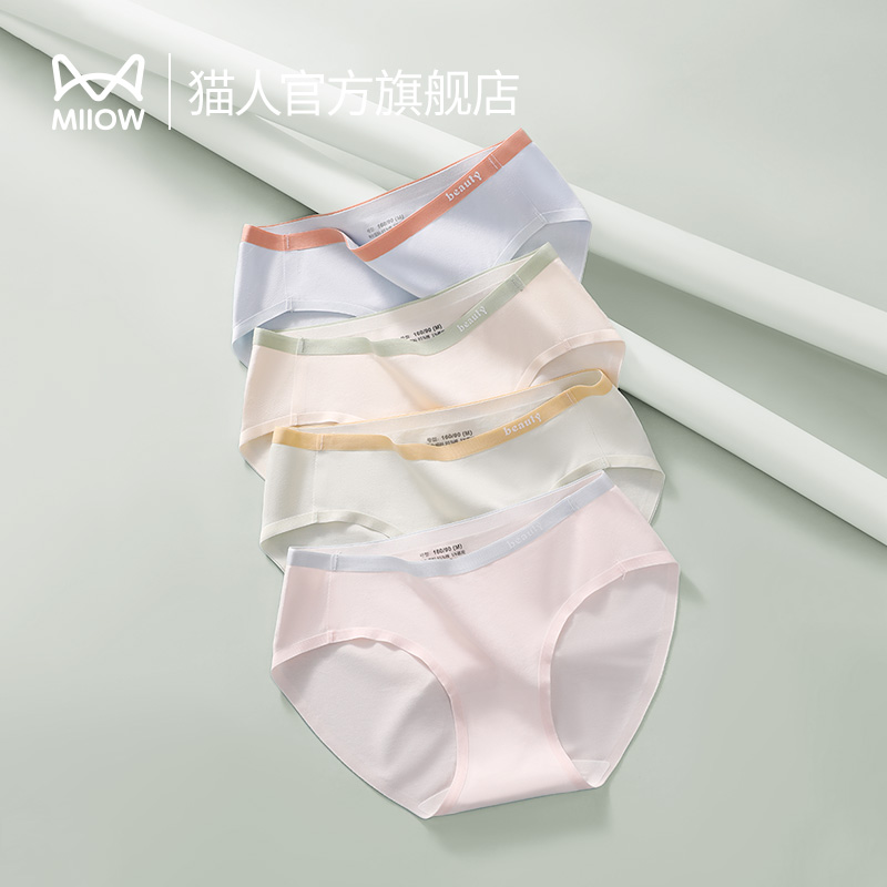 【产品名称:猫人女士内裤新疆棉纯棉抑菌底裆夏季薄款无痕透气中腰三角内裤女】