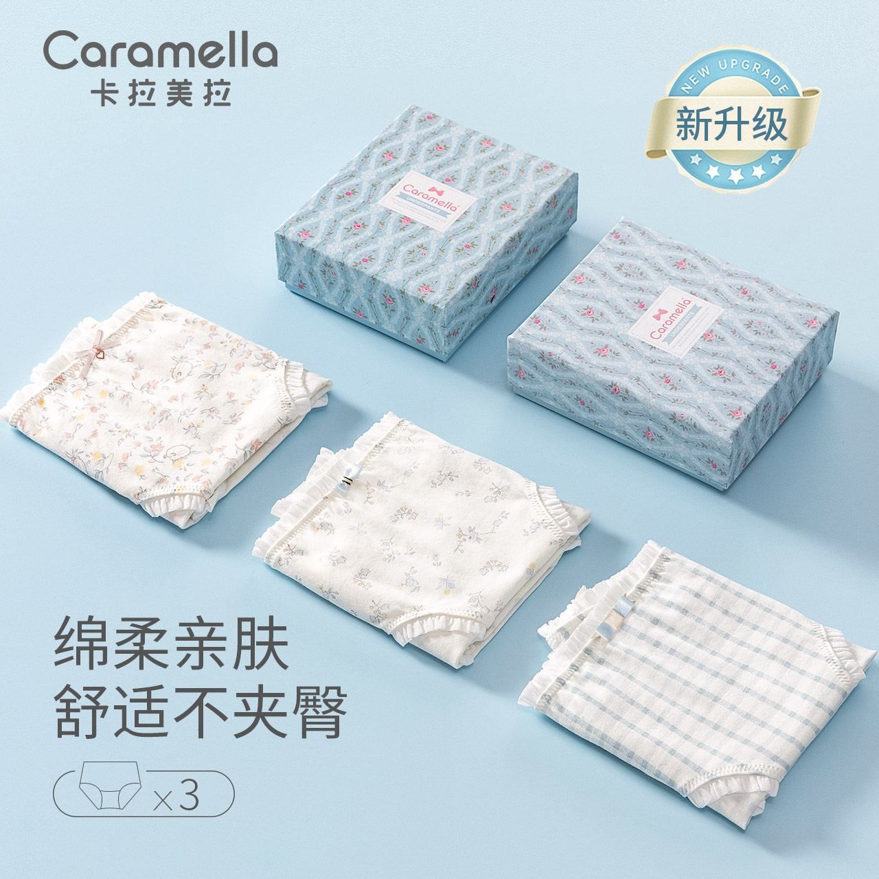 【产品名称:caramella纯棉女士内裤夏季薄款礼盒装蝴蝶结少女小清新三角短裤】