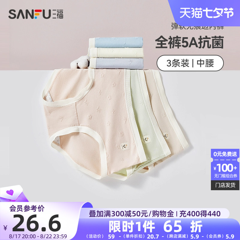 【产品名称:【5A抗菌】三福中腰内裤女纯棉底裆无痕2023新款夏季薄款三角底裤】