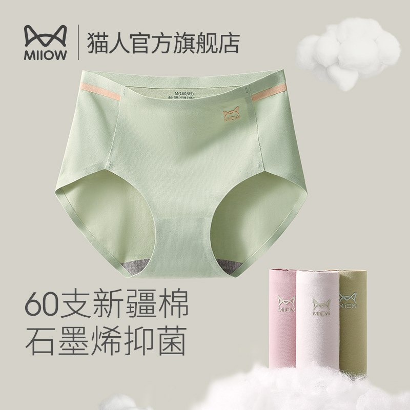 【产品名称:猫人纯棉女士内裤高腰无痕收腹提臀石墨烯抑菌裆大码透气三角短裤】