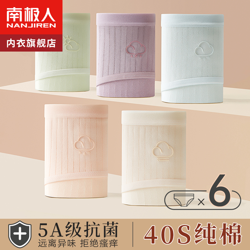 【产品名称:南极人全棉内裤女士纯棉抗菌夏季薄款少女生无痕式大码三角短裤衩】