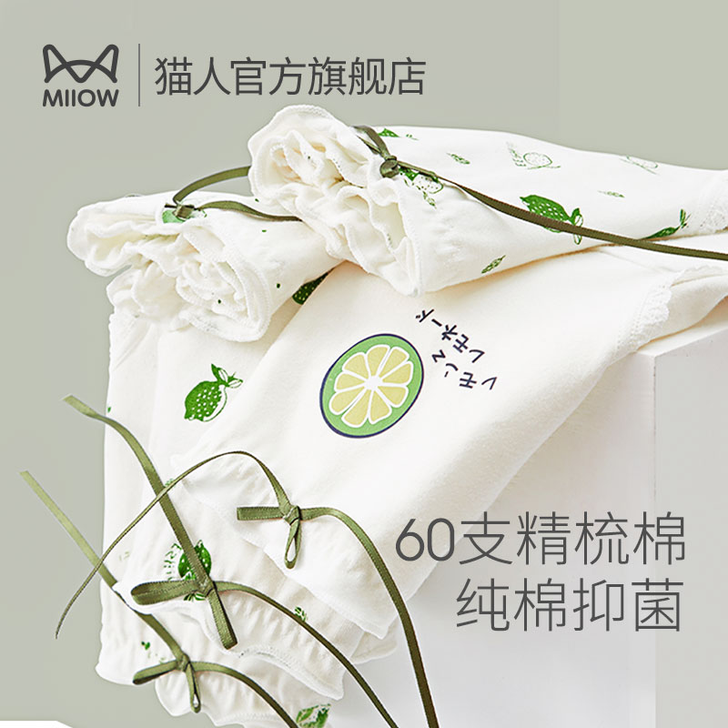 【产品名称:猫人纯棉女内裤女士抑菌日系印花中腰无痕性感可爱透气大码短裤头】