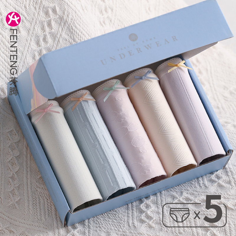 【产品名称:5条盒装芬腾内裤女士纯棉抗菌裆夏季薄款少女无痕可爱大码三角裤】