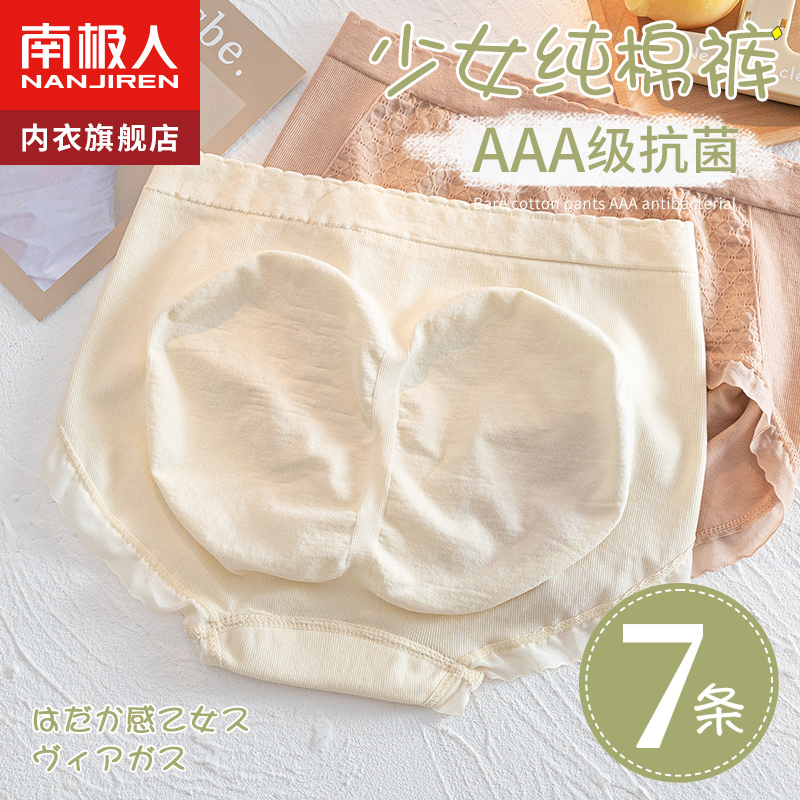 【产品名称:南极人内裤女士100%纯全棉抗菌裆少女生夏季薄款无痕式短裤衩收腹】