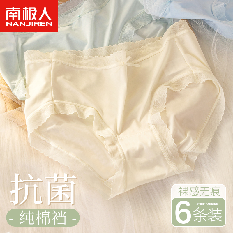 【产品名称:南极人冰丝内裤女士夏季薄款无痕少女生纯棉抗菌裆中腰短裤衩性感】