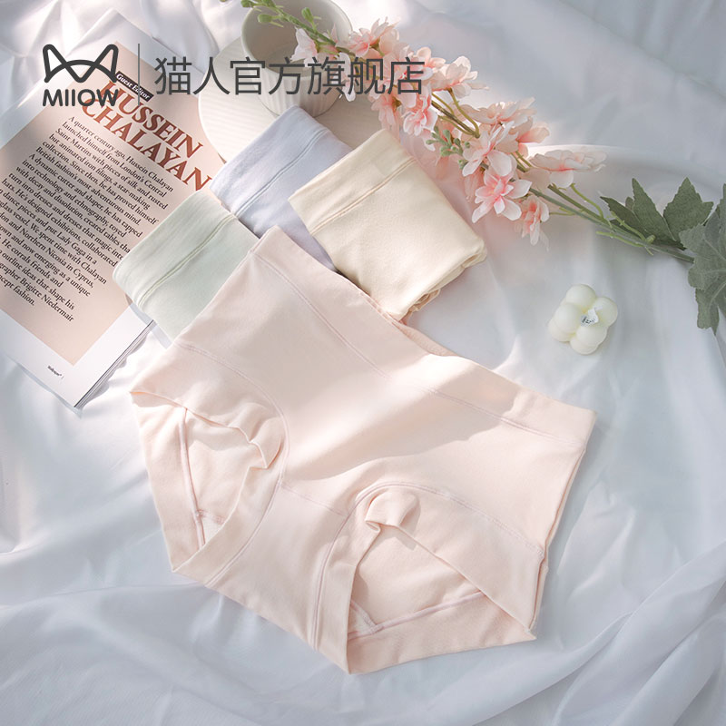 【产品名称:猫人莫代尔内裤女士桑蚕丝抑菌无痕透气中腰女生夏季薄款三角短裤】