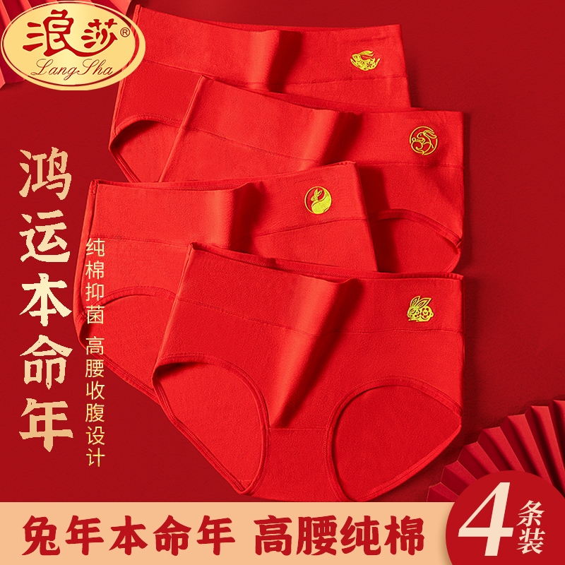 【产品名称:浪莎本命年女士内裤纯棉抗菌裆全棉大红色高腰属兔年礼物三角裤头】