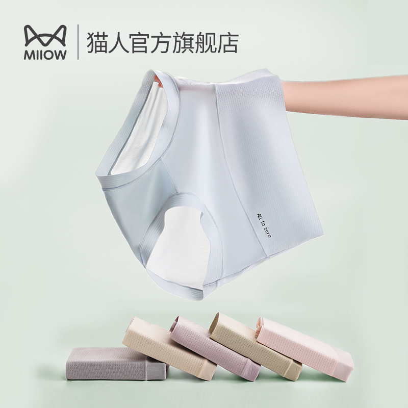【产品名称:猫人冰丝凉感无痕内裤女中高腰女生抑菌三角裤夏轻薄速干纯全棉裆】