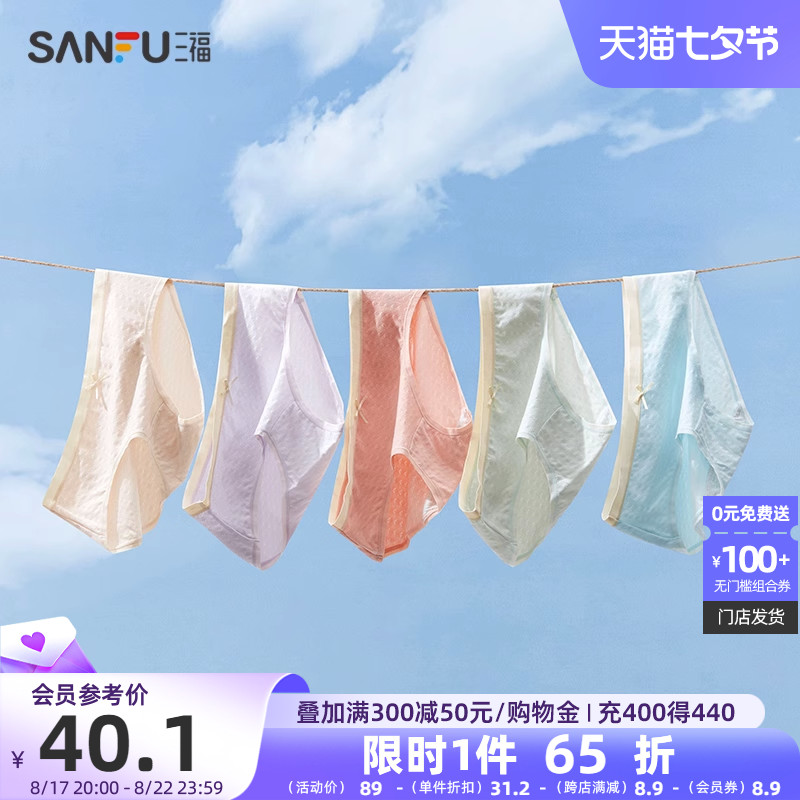 【产品名称:【5条装】三福中腰女士底裤女生无痕抗菌纯棉底裆夏季薄款内裤女】