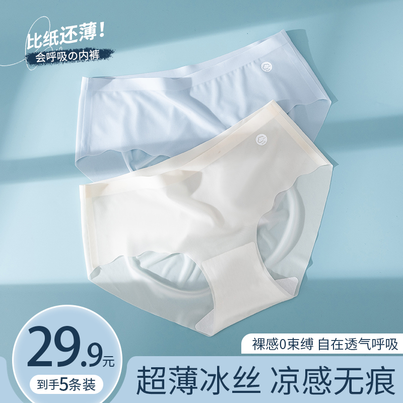 【产品名称:冰丝无痕内裤女夏季薄款纯棉抗菌女士不夹屁屁舒适性感速干三角裤】