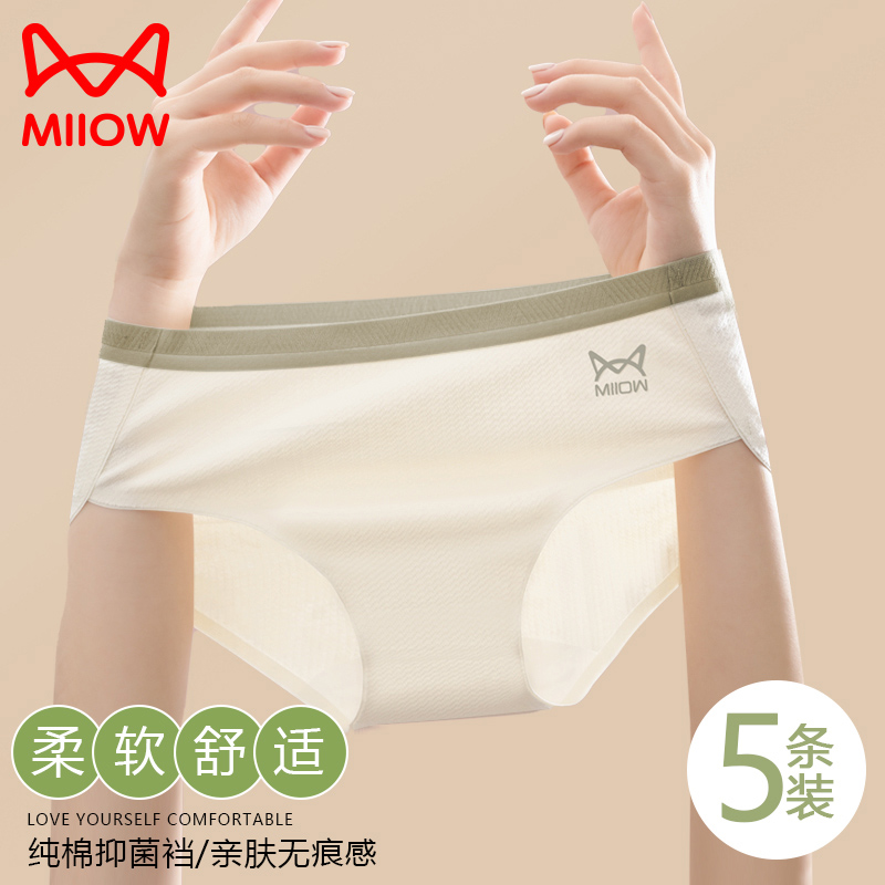【产品名称:猫人内裤女士纯棉全棉抗菌裆夏季薄款无痕少女生中腰短裤性感新款】