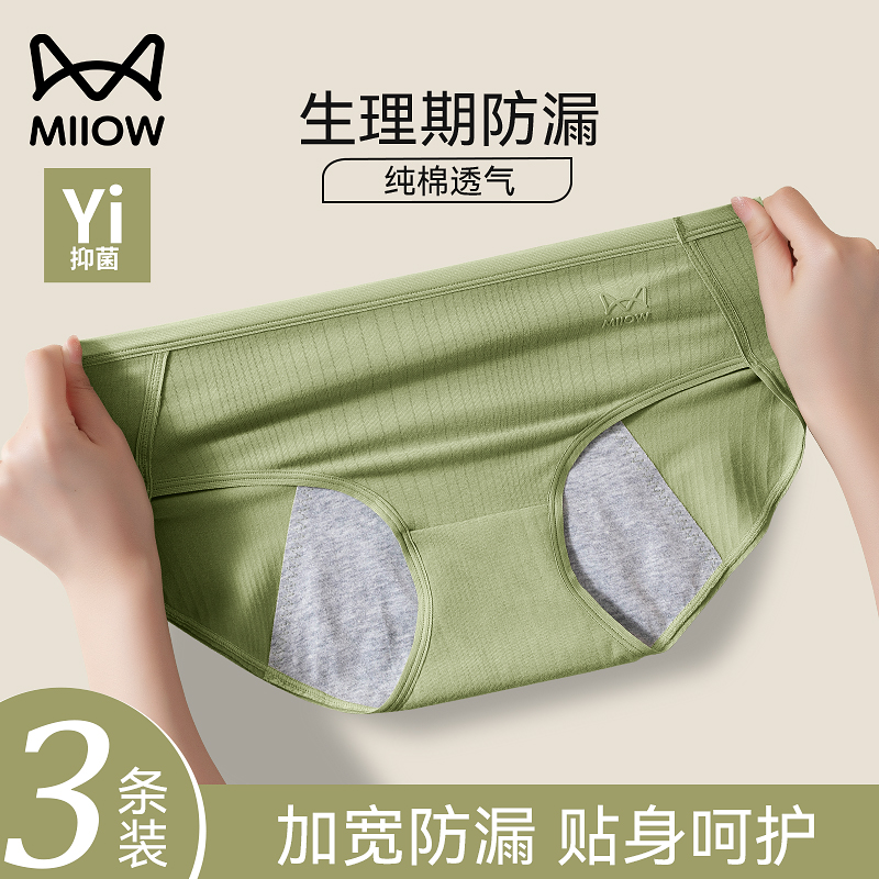【产品名称:猫人生理裤内裤女纯棉夏季全棉抑菌裆中腰月经期防漏安全姨妈短裤】