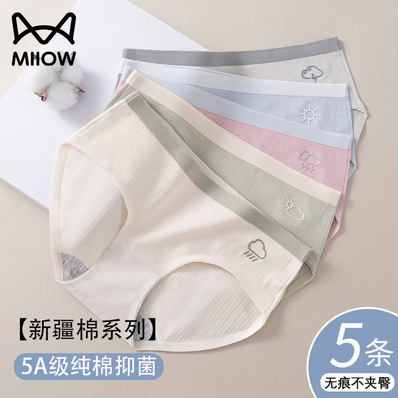 【产品名称:猫人内裤女纯棉无痕抗菌全棉裆中腰夏季薄款透气少女生三角短裤头】