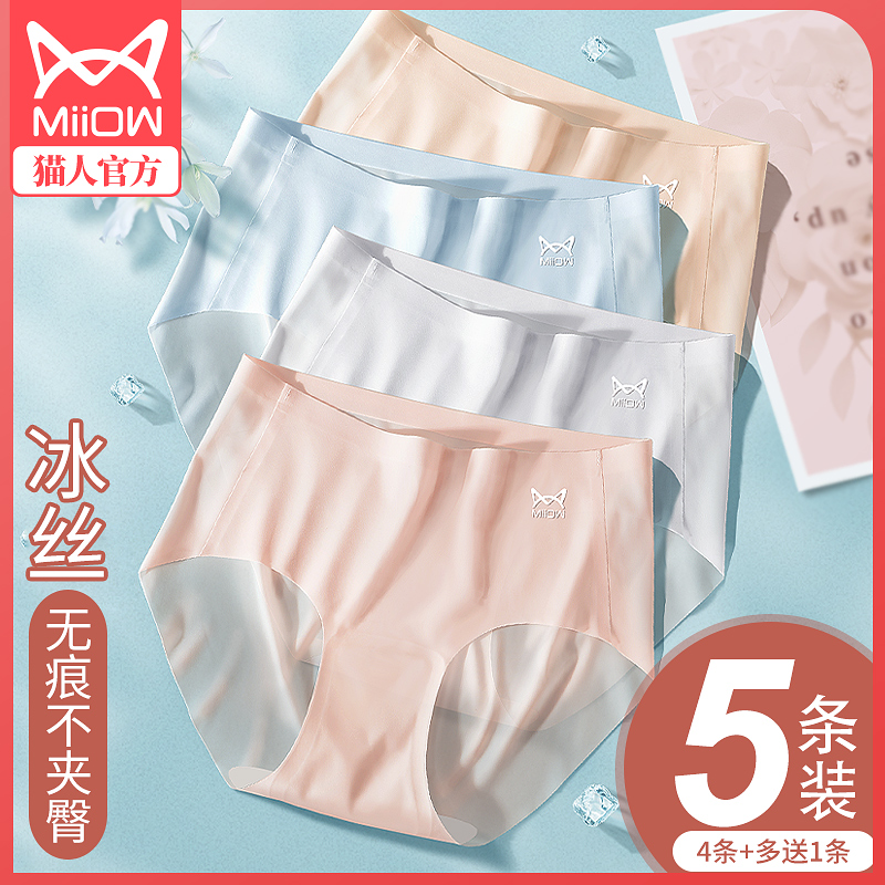 【产品名称:猫人不夹臀无痕内裤女士冰丝夏季薄款纯棉抗菌裆高腰女生运动短裤】