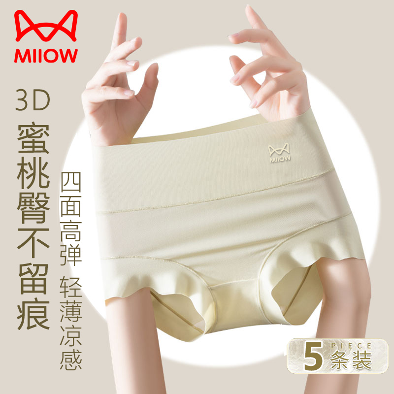 【产品名称:猫人高腰轻收腹提臀内裤女士冰丝无痕抗菌裆大码夏季薄款平角短裤】