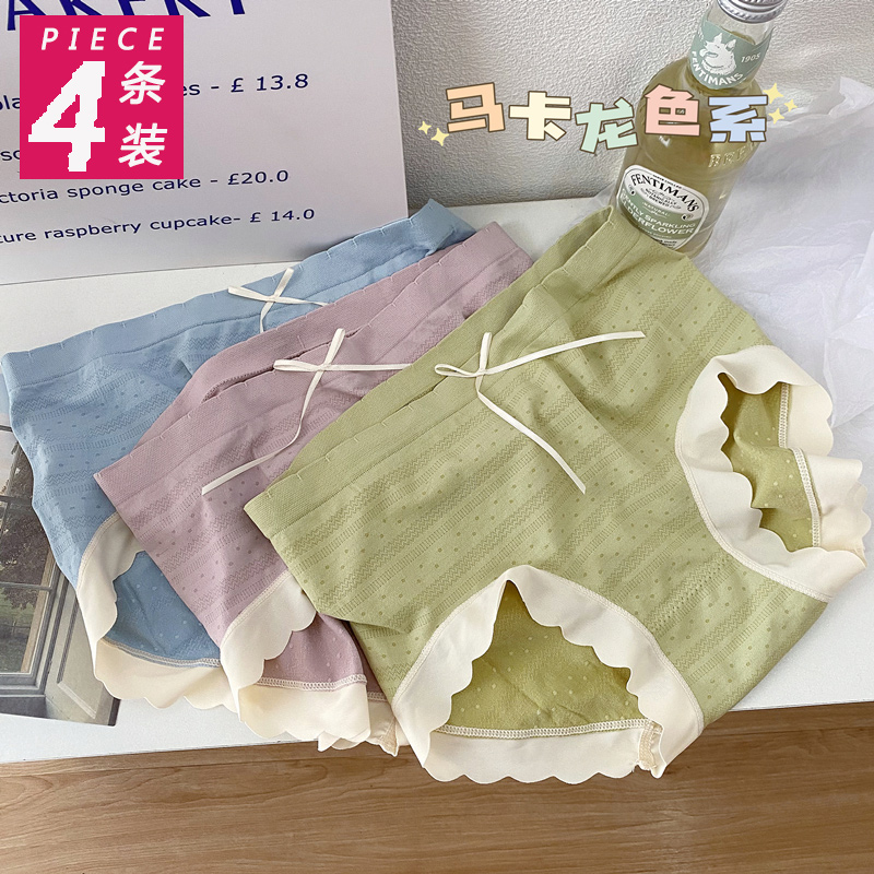 【产品名称:无痕无缝少女士内裤软软糯糯裸感包臀透气舒适蝴蝶结中腰三角裤女】