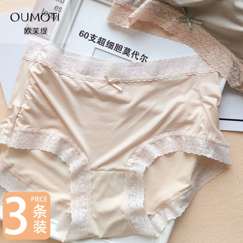 【产品名称:内裤女中腰莫代尔女士蕾丝石墨烯纯棉抗菌无痕高薄款舒适肤色大码】