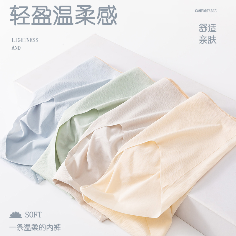 【产品名称:轻薄无痕提花冰丝三角裤一片式少女高腰舒适透气纯棉裆女士内裤】