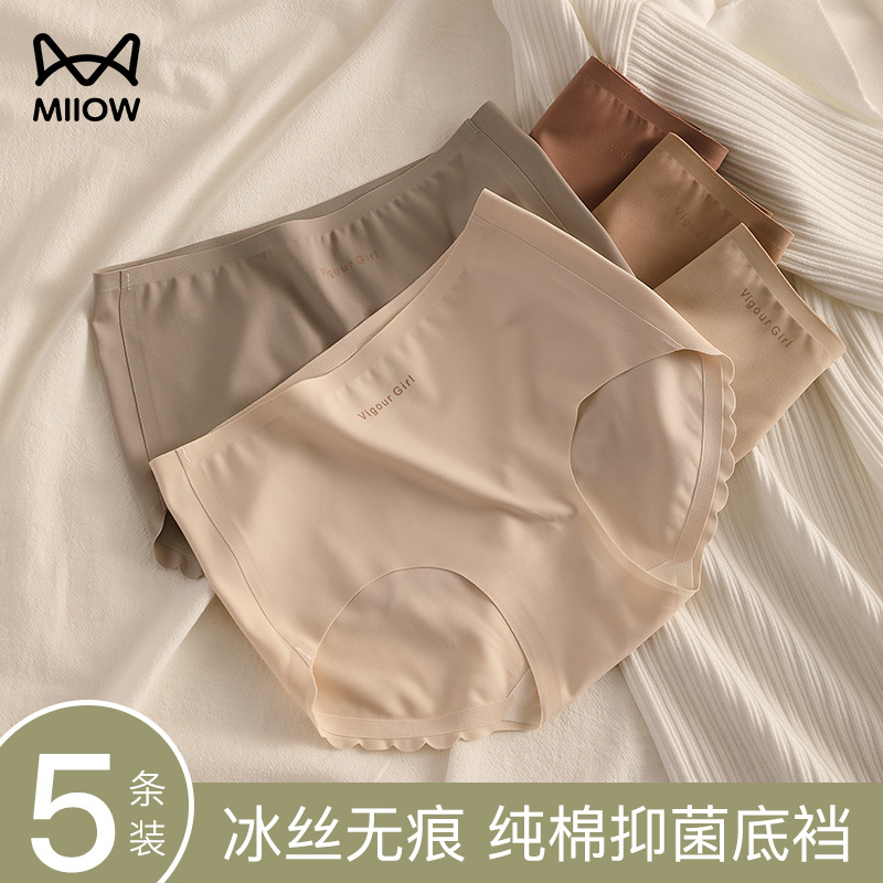 猫人冰丝内裤女士无痕纯全棉裆夏季薄款少女生性感中腰三角短裤头