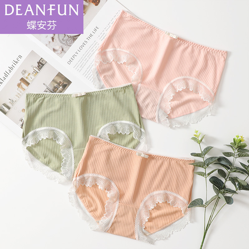 【产品名称:蝶安芬女士内裤女中腰平角纯棉裆蕾丝边简约舒适透气莫代尔底裤头】