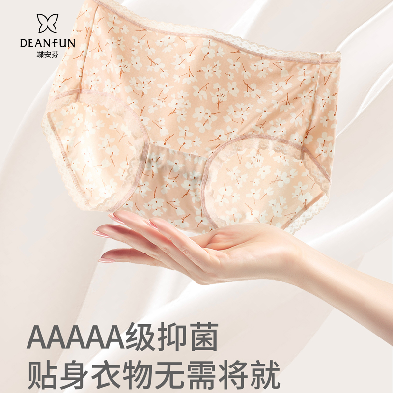 【产品名称:蝶安芬女士纯棉内裤抗菌档夏季薄款中腰可爱印花少女生短裤平角裤】