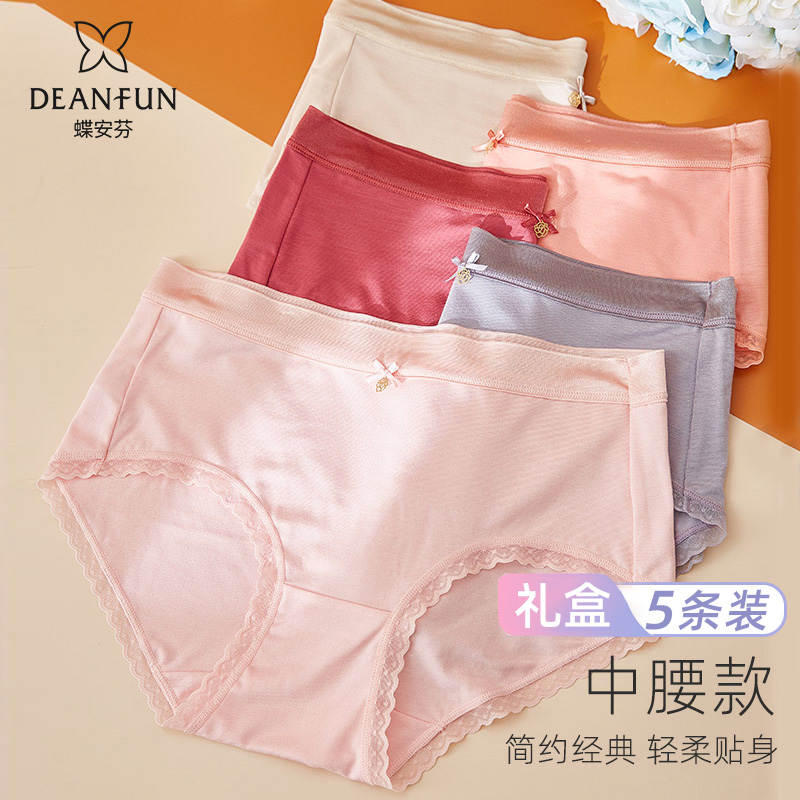 【产品名称:蝶安芬花颜系列女士内裤女中腰蕾丝边简约纯色柔软舒适透气三角裤】