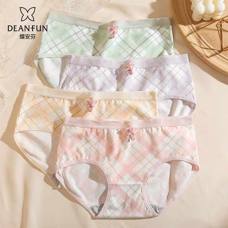 【产品名称:蝶安芬女士内裤女抗菌舒适透气格子蝴蝶结格子中腰平角裤三条装】