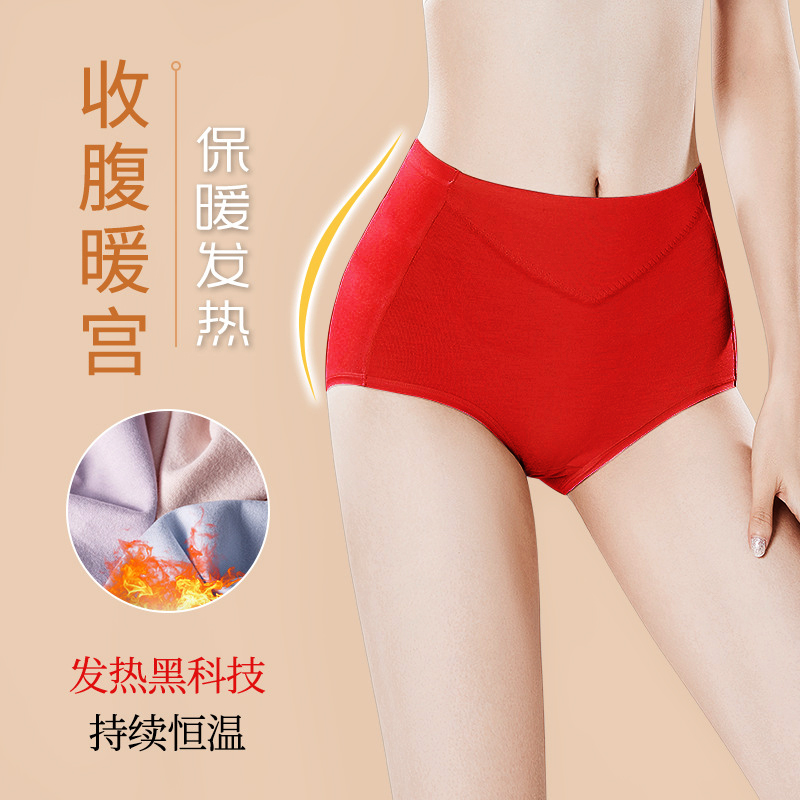 【产品名称:女士内裤无痕桑蚕丝抑菌裆保暖高腰收腹提臀本命年大红包臀三角裤】