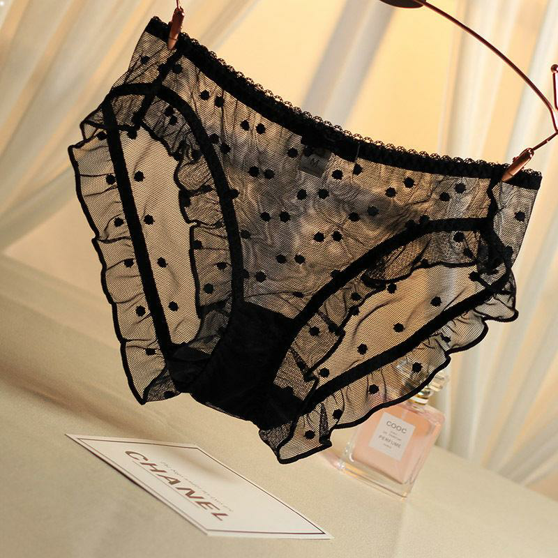 【产品名称:2/3条日系圆点低腰速干透气网纱火辣透视蕾丝性感三角内裤女棉质】