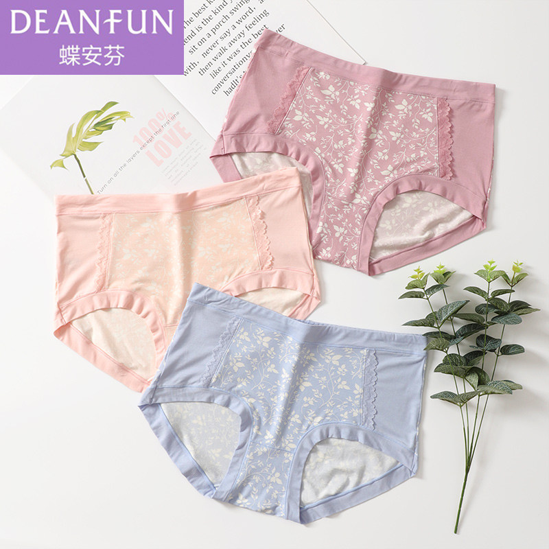 【产品名称:蝶安芬女士内裤女中高腰平角莫代尔柔软透气印花包臀提臀大码3条】