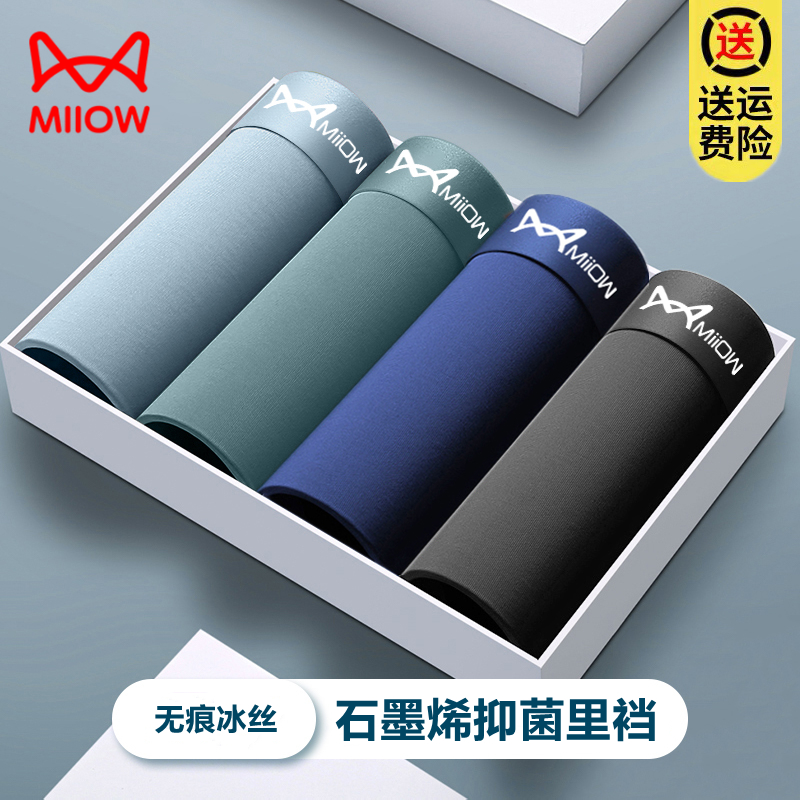 【产品名称:猫人男士内裤无痕冰丝石墨烯抗菌透气平角裤夏季男款运动四角短裤】