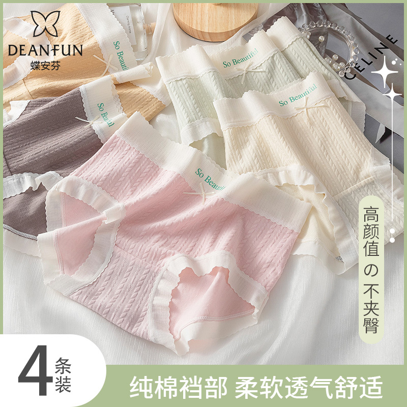 【产品名称:蝶安芬女士内裤女透气中腰平角裤抗菌纯棉裆字母蝴蝶结简约裤头女】