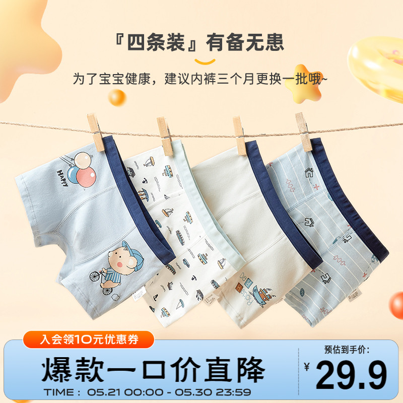 【产品名称:皇室童缘儿童内裤男童夏季平角四角青少年中大童薄款小男孩短裤】