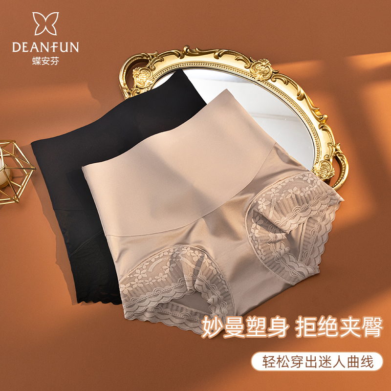 【产品名称:蝶安芬高腰收腹女士内裤女纯棉档奢华蕾丝边纯色平角裤提臀裤头女】