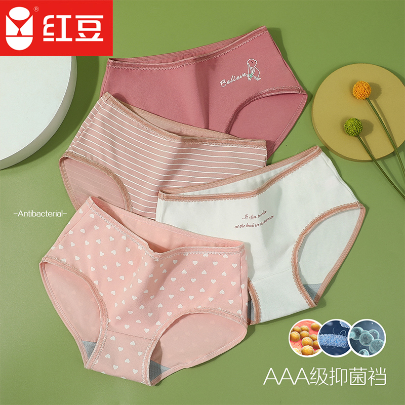 【产品名称:红豆女士内裤纯棉透气抗菌档中腰舒适高中少女生夏季全棉质短裤头】