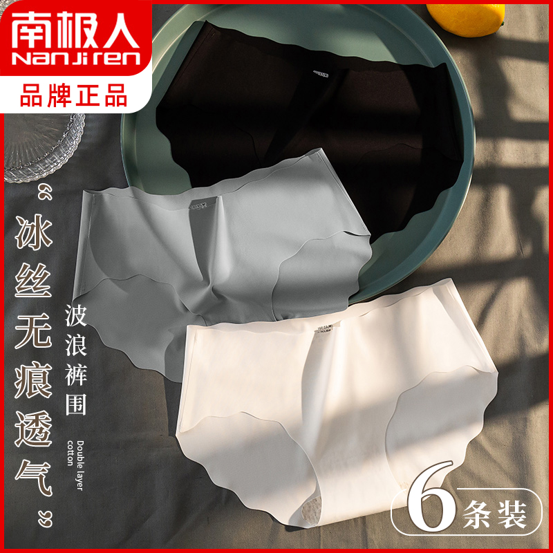 【产品名称:南极人冰丝无痕内裤女士夏抗菌纯棉裆透气情调性感提臀大码三角裤】