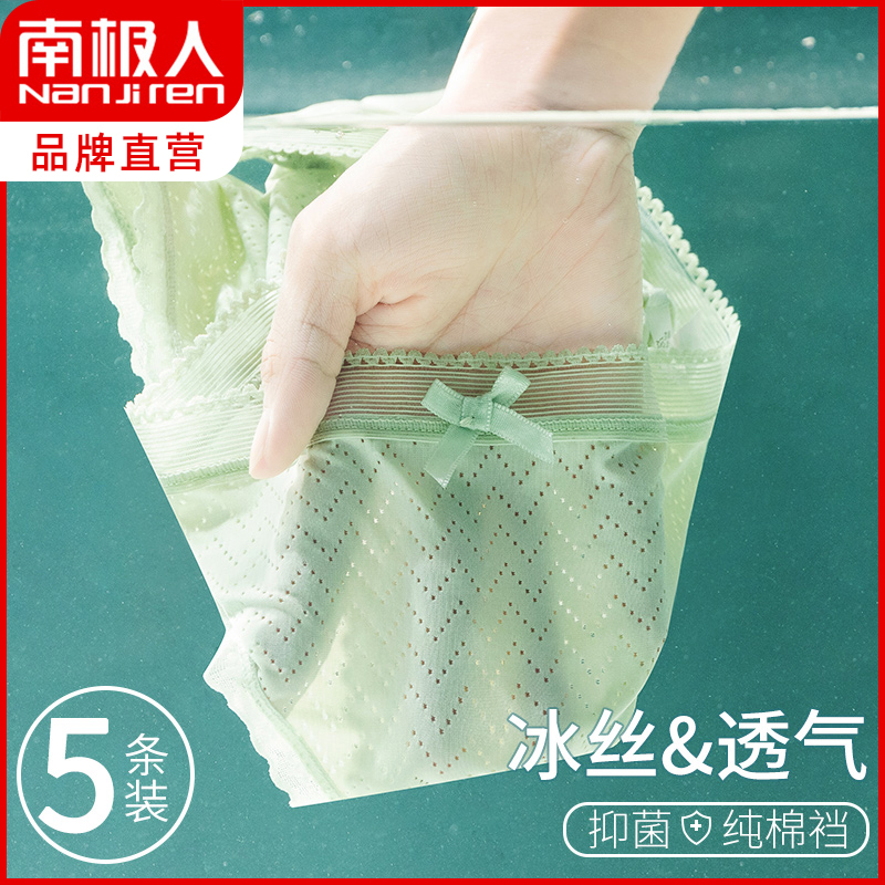 【产品名称:南极人冰丝无痕内裤女士薄款透气抗菌纯棉裆性感大码少女三角短裤】