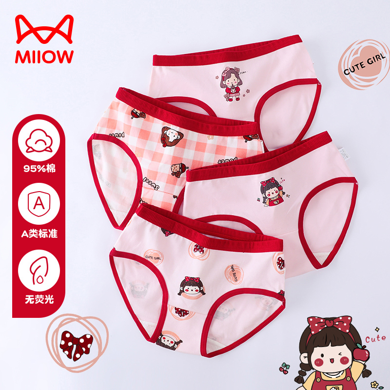 【产品名称:猫人女童纯棉内裤三角短裤儿童小女孩100%女宝宝大童全棉不夹屁屁】