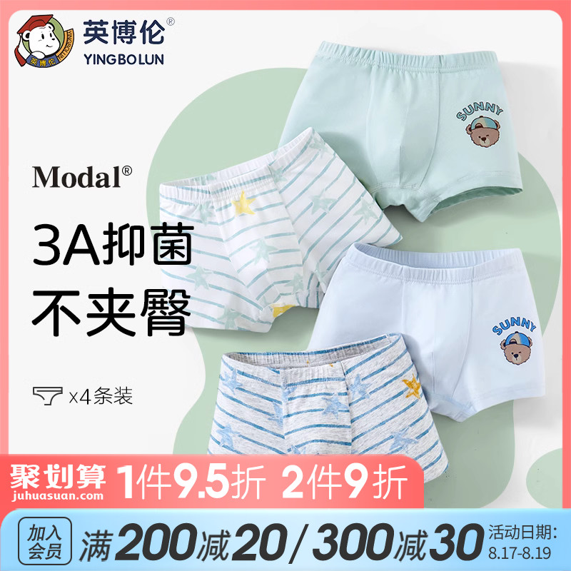 【产品名称:英博伦儿童内裤男童中大童莫代尔四角青少年女童宝宝平角小孩短裤】