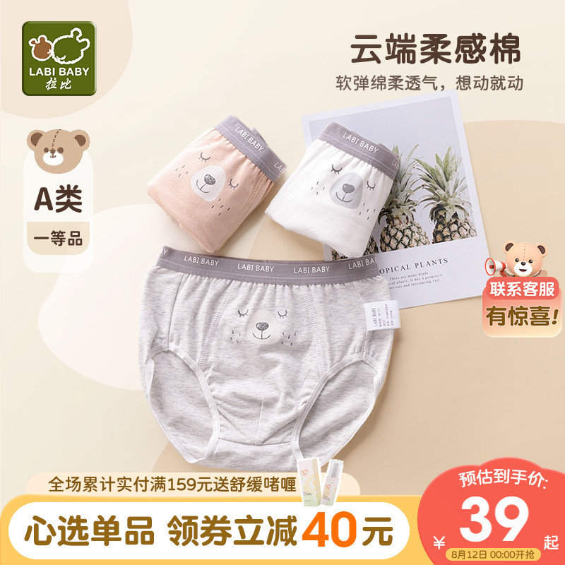 【产品名称:拉比儿童内裤男宝宝1-3-5岁纯棉男童三角裤中小童婴儿内裤3条装】