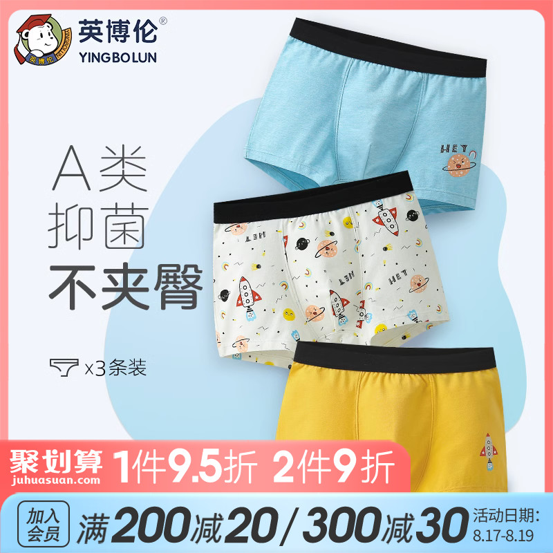 【产品名称:英博伦夏季薄款儿童内裤纯棉莱卡男童宝宝平角裤大童男孩四角短裤】
