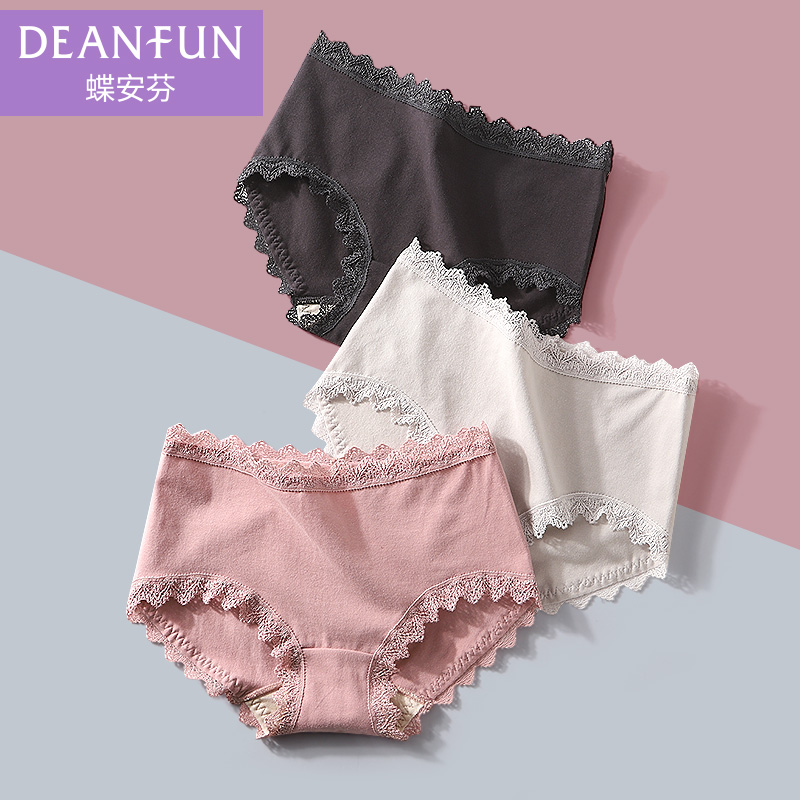 【产品名称:蝶安芬内裤女士纯棉100%全棉裆抗菌中腰三角夏季薄款性感蕾丝底裤】