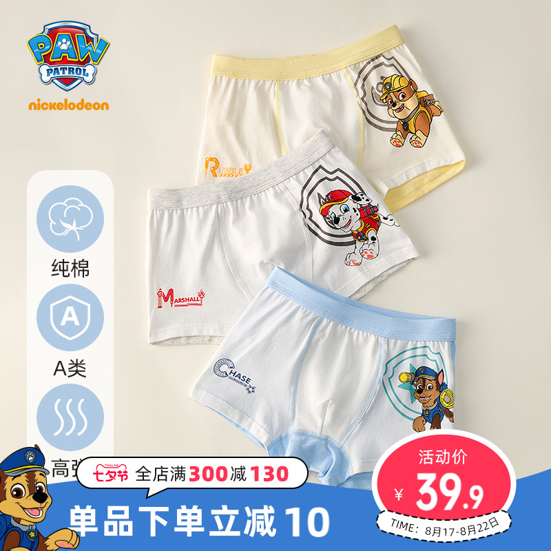【产品名称:汪汪队儿童内裤纯棉男童平角裤女童四角裤宝宝裤头男孩裤衩夏季】