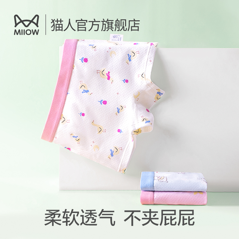 【产品名称:猫人儿童内裤女童纯棉抑菌女宝宝中大童女全棉100%平角四角短裤】